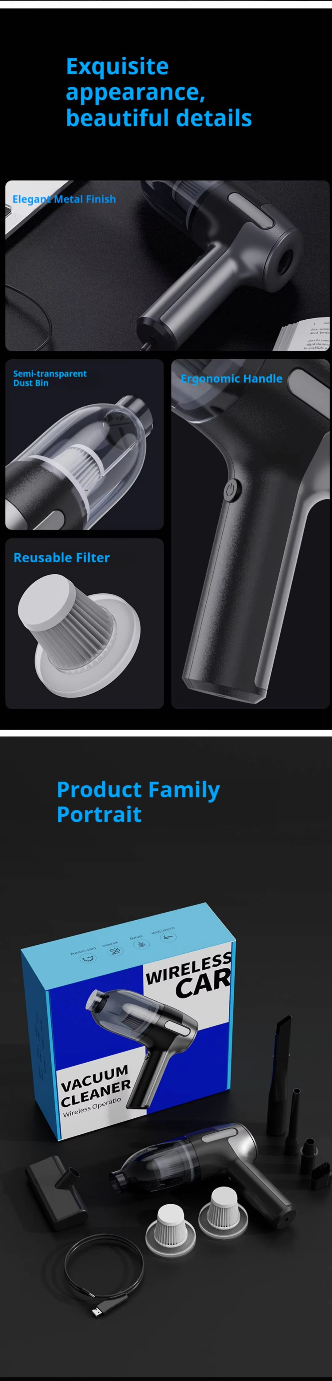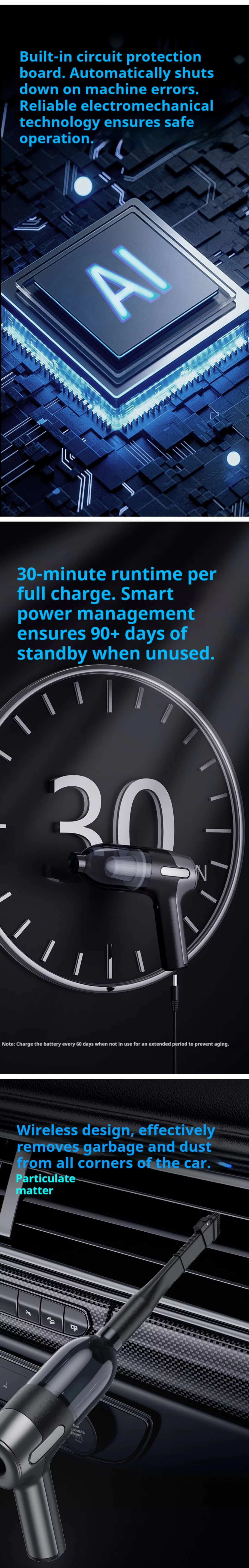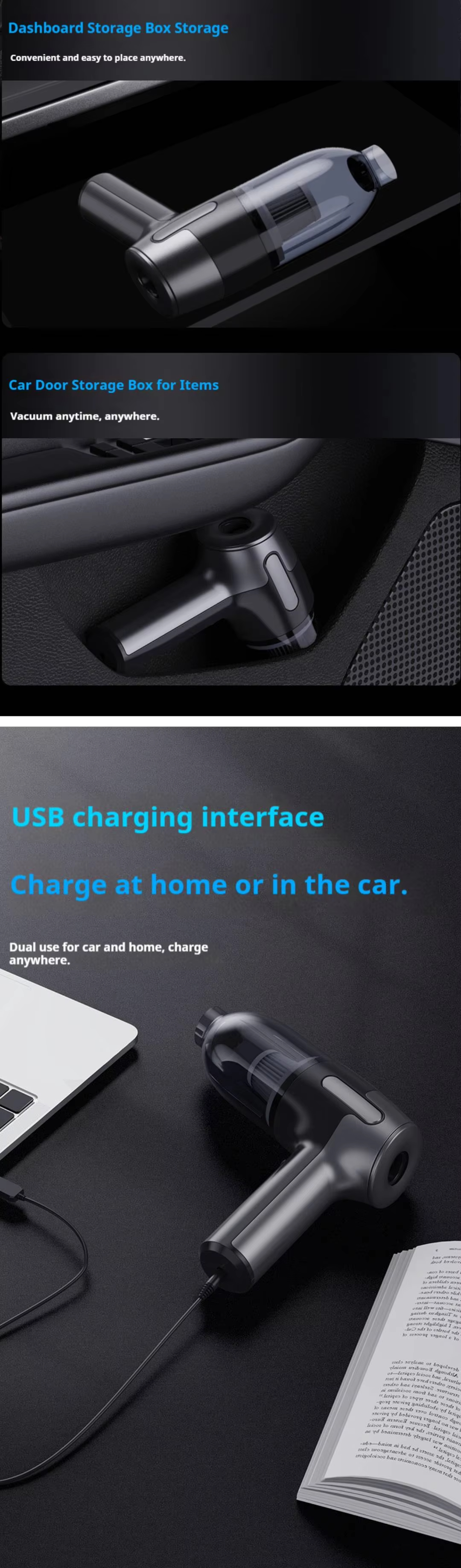 Next: Portable Wireless Car Vacuum Cleaner with ABS Material USB Charging 30-45min Runtime Black High-Power Handheld for Car Use