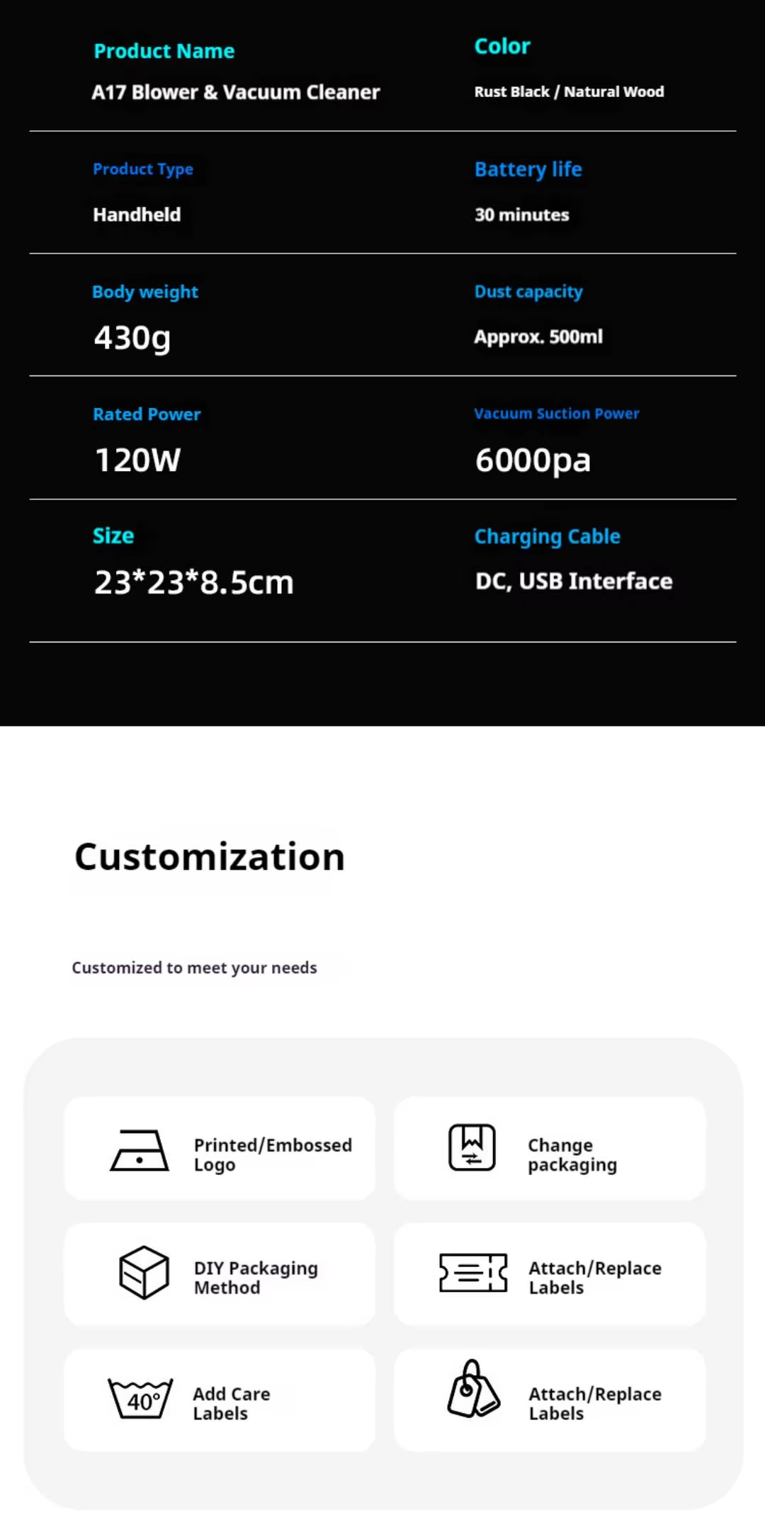 Prev: Portable Battery Powered Blowing and Suction Integrated Super Large Suction ABS Material Household Car Dual-use Vacuum Cleaner