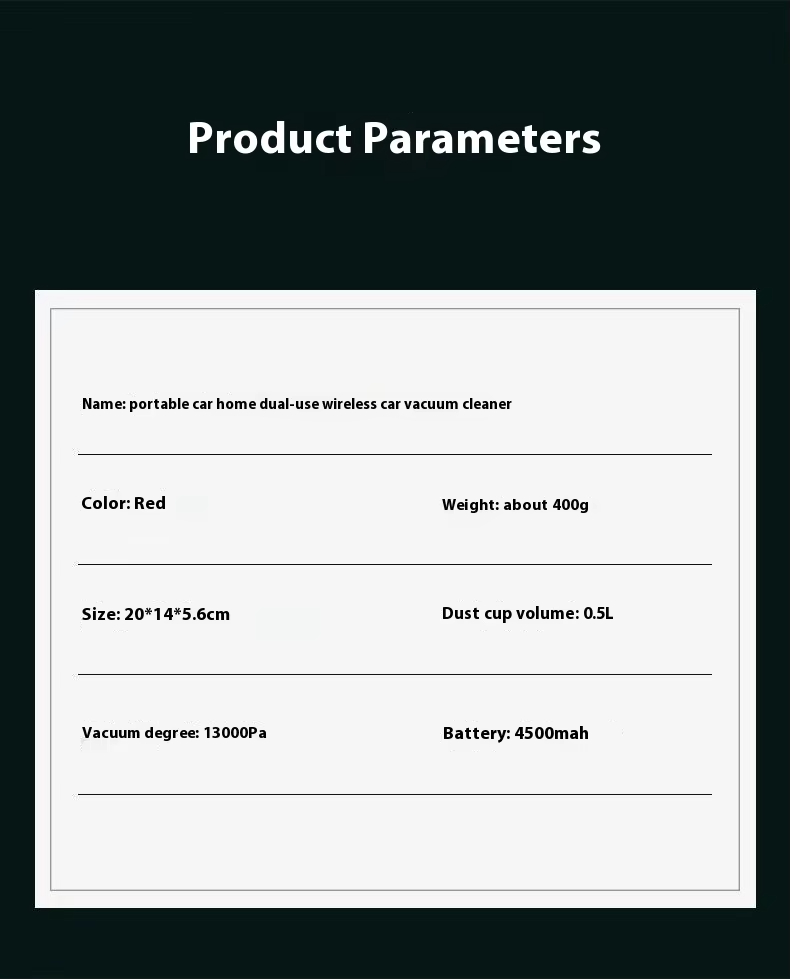 Prev: Wireless Car Vacuum Cleaner Handheld Mini Home Vacuum Cleaner 3 in 1 Big Suction Portable Pet Hair Sucker