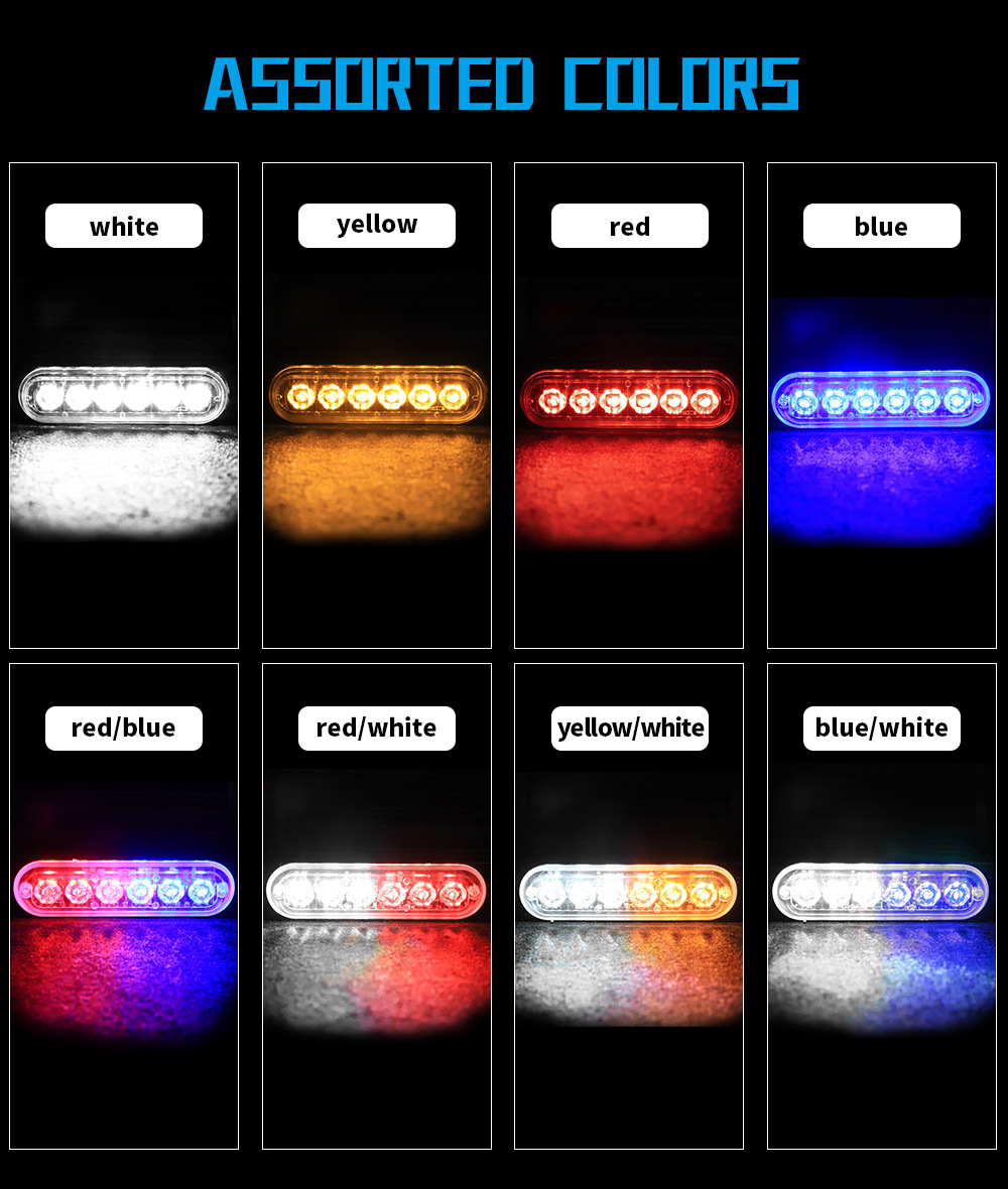 China auto parts 12V - 24V 6LED car emergency Red blue green amber 12 led grille strobe light warning light Traffic light